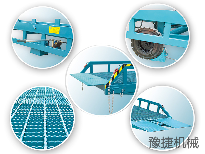● 移动式液压登车桥广泛用于无装卸设备的货台以及流动装卸场所,是与叉车配合使用的货物装卸辅助工具,借助该设备,叉车可以直接驶入汽车车厢内部进行批量装卸作业