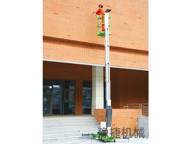 单桅铝合金升降平台:采用优质铝合金材料,具有造型美观、体积小、重量轻、升降平稳、安全可靠等优点。广泛用于工厂、宾馆、餐厅、车站、影剧院、展览馆等场所,是保养机具、油漆装修、调换灯具、电器、清洁保养等用途的理想安全伴侣。