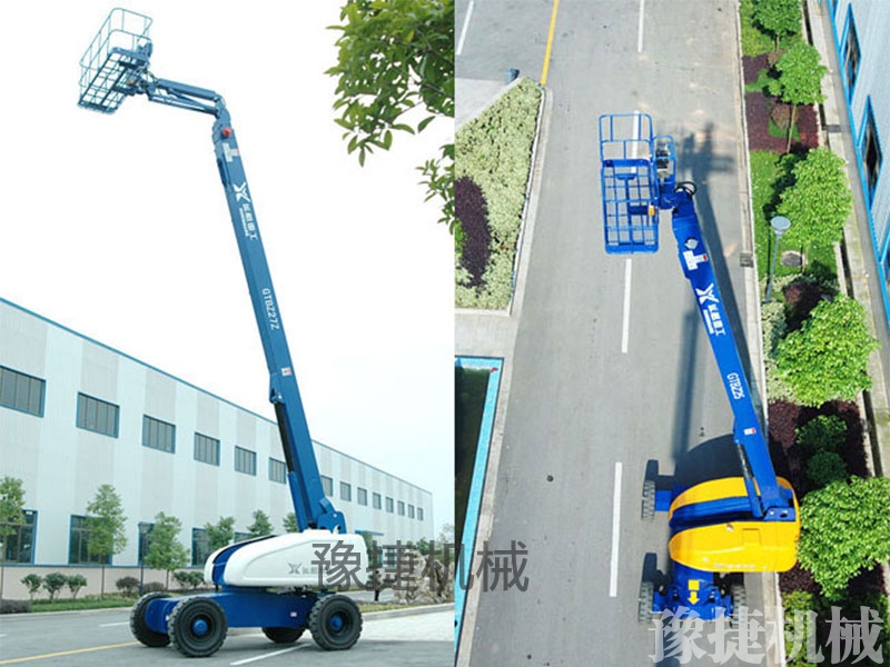 7.臂架伸缩、变幅、回转以及平台行走均采用电子液压比例控制,能实现无级调速。