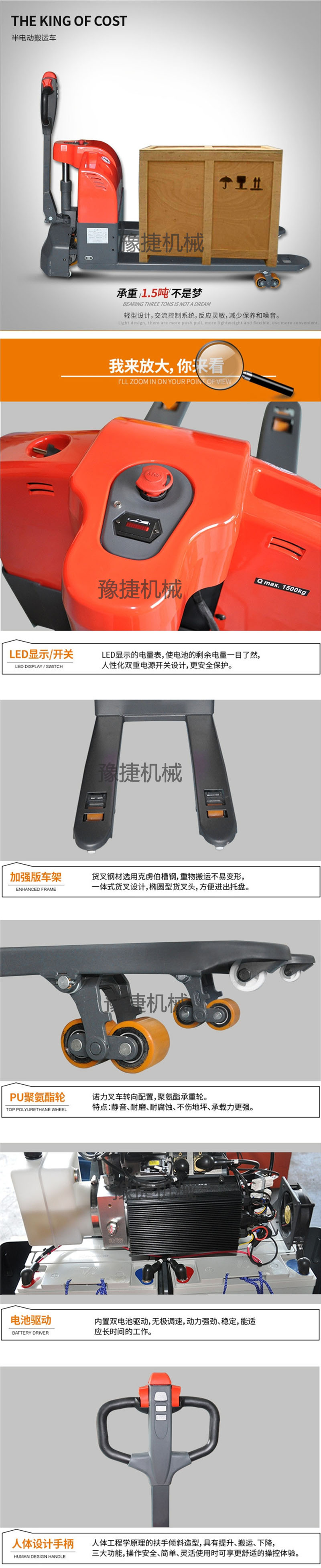 · 坚固的金属外罩保护了电机和车轮,同时也可靠的保护了操作者的脚部。