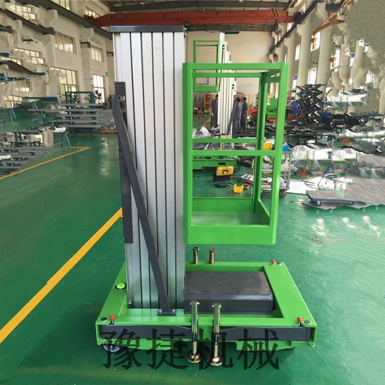 单桅铝合金升降平台:采用优质铝合金材料,具有造型美观、体积小、重量轻、升降平稳、安全可靠等优点。广泛用于工厂、宾馆、餐厅、车站、影剧院、展览馆等场所,是保养机具、油漆装修、调换灯具、电器、清洁保养等用途的理想安全伴侣。