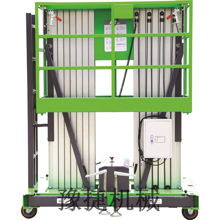 双桅铝合金升降平台:采用优质铝合金材料,具有造型美观、体积小、重量轻、升降平稳、安全可靠等优点。广泛用于工厂、宾馆、餐厅、车站、影剧院、展览馆等场所,是保养机具、油漆装修、调换灯具、电器、清洁保养等用途的理想安全伴侣。